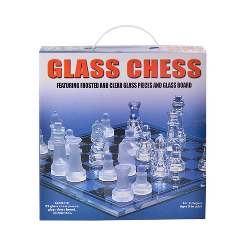 Şəffaf və tutqun şahmat sahələri olan şüşə taxta üzərində akril şahmat fiqurları çox orijinal görünür.